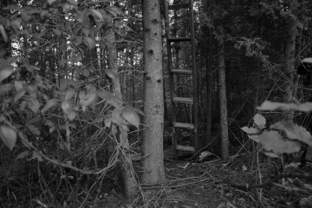 Quelque part au Québec, chasseuses et chasseurs s’isolent dans de petites caches pour se fondre dans le paysage. Des heures durant, ils et elles attendent discrètement. Le temps se dilate alors et leurs sens s’éveillent, stimulés par la diversité et la richesse de la nature qui les entoure. Depuis cet écrin, ils et elles laissent leurs pensées parcourir les paysages qui s’animent sous leurs yeux et parviennent à se reconnecter avec eux·elles-mêmes. Élevé par une conception sonore foisonnante, le documentariste Nicolas Paquet travaille la durée des plans qu’il surplombe par des témoignages intenses et honnêtes de chasseuses et de chasseurs détaillant leurs habitudes et l’expérience ressourçante, voire thérapeutique, que leur procure la chasse en cache.