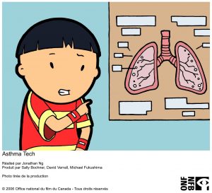 Œuvre d’animation semi-autobiographique de Jonathan Ng sur les épreuves d’un jeune garçon asthmatique. Avec beaucoup de fantaisie, Asthma Tech raconte l’histoire de Winston qui, grâce à son talent d’artiste et une forte imagination, surmonte son handicap qui l’empêche de s’adonner avec ses amis aux jeux et aux activités de son âge.